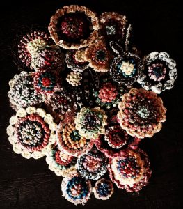 ファンシーヤーンで作ったアクセサリー雑貨など目白押しです。