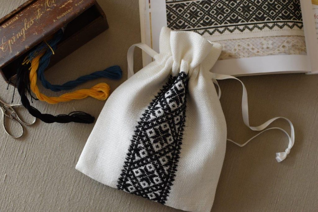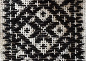 日本のこぎん刺しと同じく、布目を数えながら刺して模様を作っていきます。