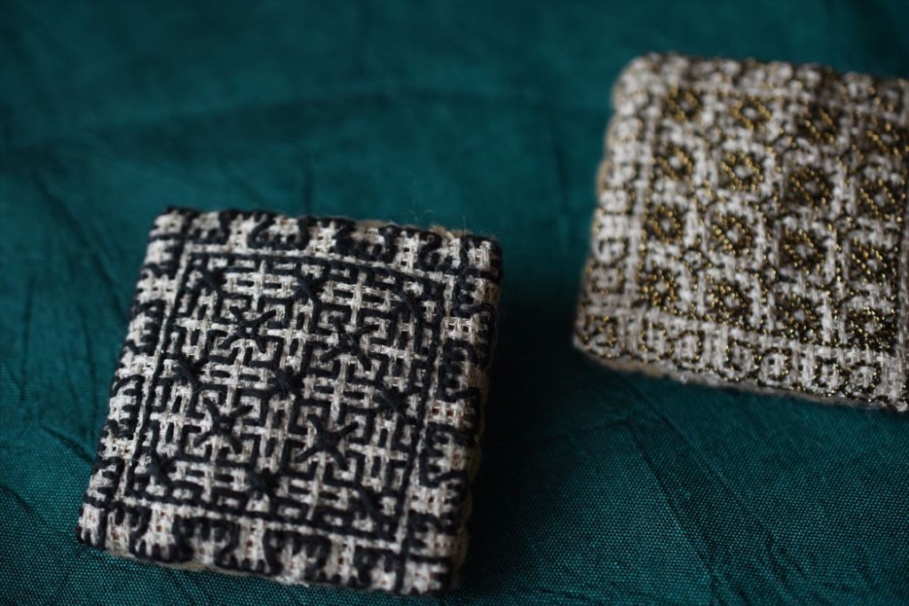 今回の刺繍ワークショップは、一色の糸で線を刺し模様を作っていくブラックワークです。刺す面積が小さめのブローチなので混乱せず仕上げられることと思います。麻の布がベースでどんな色のお洋服にも合わせやすく、お気に入りのアクセサリーになることでしょう。