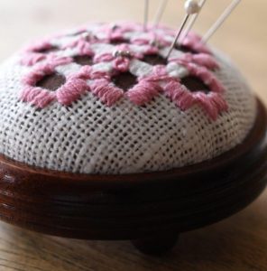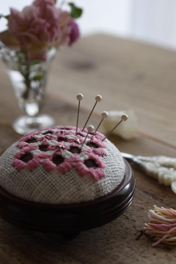 完成したピンクッションでご自分の裁縫箱を飾ってください。