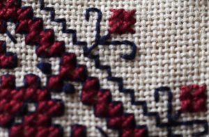 クロスステッチのまわりをホルベインステッチで囲んで模様を強調する技法、